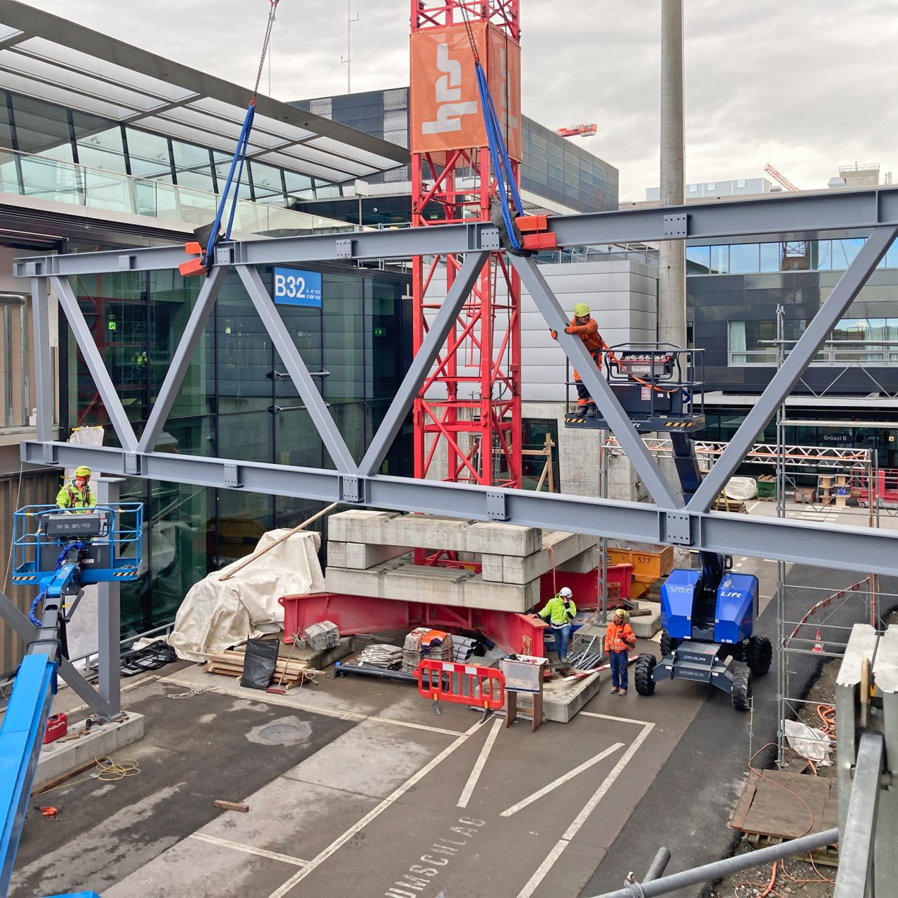 Die Tragstruktur der Passerelle, die den Modulbau an das Dock B anbindet, wurde versetzt.